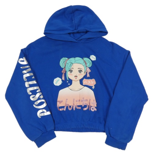Tmavomodrá crop mikina s dívkou a kapucňou C&A
