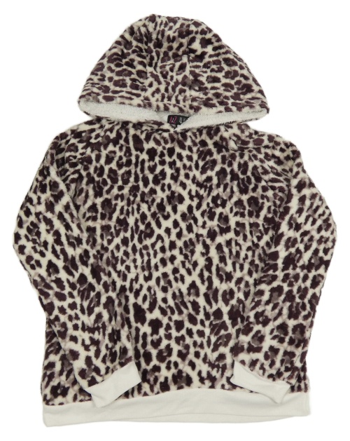 Bielo-lilková vzorovaná chlpatá mikina s kapucňou