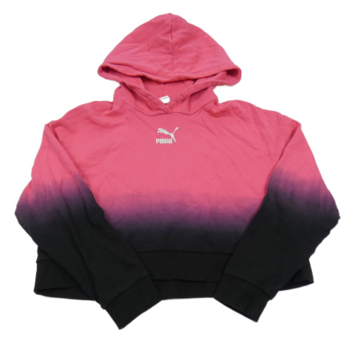 Malinovo-čierna crop mikina s logom a kapucňou Puma
