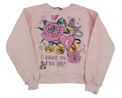 Svetloružová crop mikina s růžemi a motýlikmi a srdiečkami George