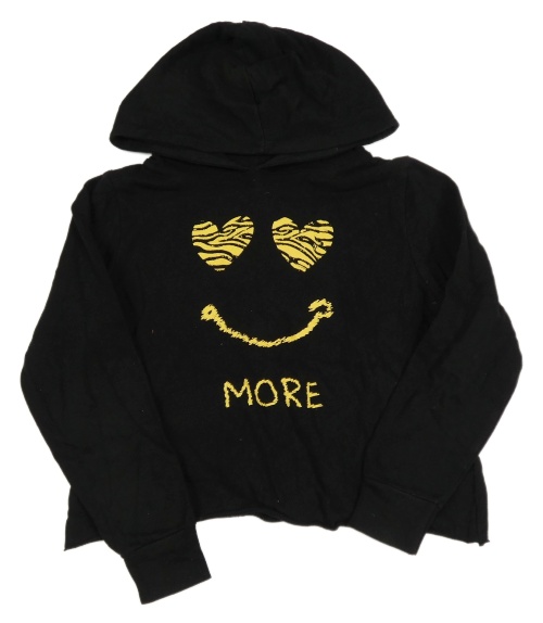 Čierna crop mikina so smajlíkom a nápisom a kapucňou BLUE SEVEN
