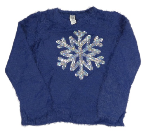 Tmavomodrý chlpatý sveter s vločkou z flitrů C&A