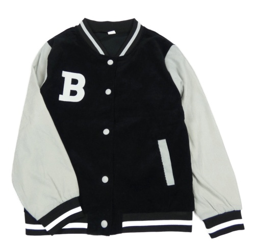 Čierno-biela zamatová prepínaci baseballová mikina s písmenkom