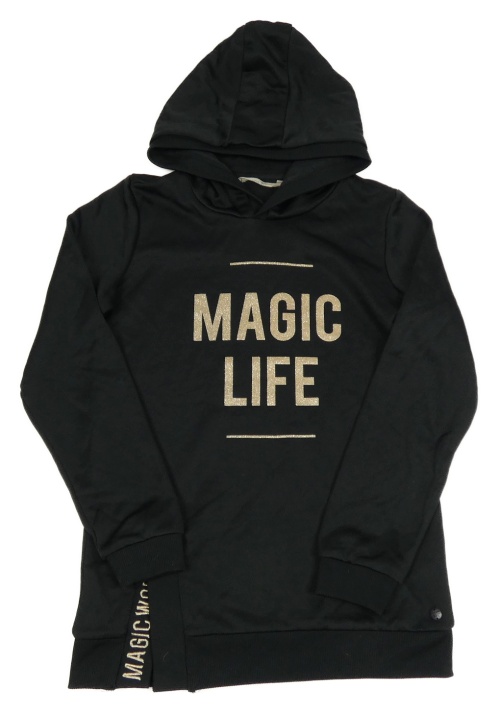 Čierna športová mikina so zlatým nápisom a kapucňou