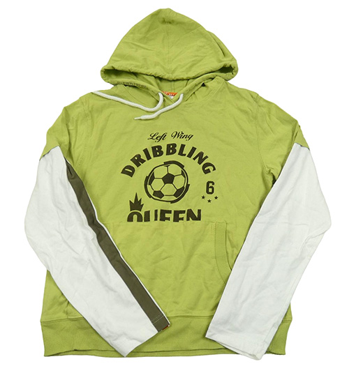Zeleno-bielo-sivá mikina s nápismi a kapucňou