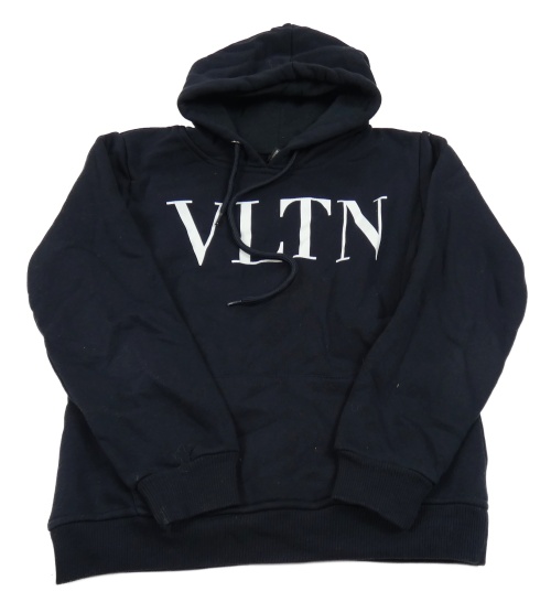 Tmavomodrá mikina s písmenky a vreckom a kapucňou