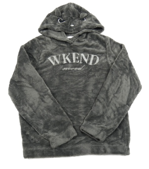 Tmavosivá plyšová mikina s nápismi a kapucí - mačička H&M