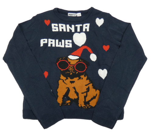 Tmavomodrý pletený sveter s psíkom s vánočním motívom a srdiečkami Pepperts!