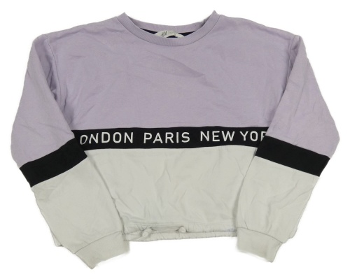 Lila-bielo-čierna crop mikina s nápisom H&M