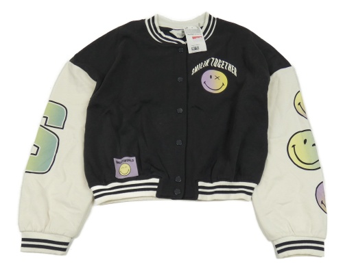 Nové - Čierno-biela baseballová crop mikina so smajlíkmi H&M