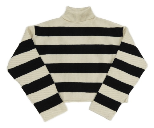 Krémovo-čierny pruhovaný rebrovaný crop sveter s rolákom Zara