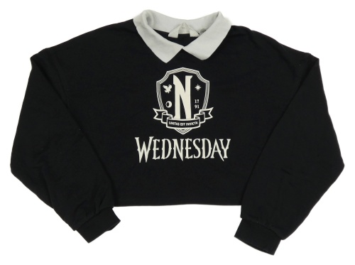 Čierna crop mikina s nápisom a límečkem - Wednesday H&M