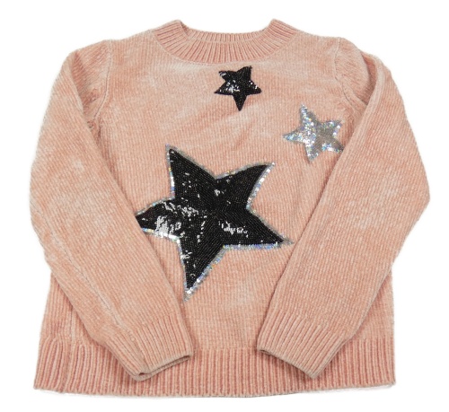 Svetloružový melírovaný žinylkový sveter s hvězdičkami z flitrů C&A