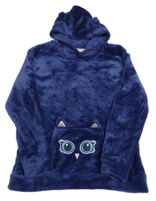 Tmavomodrá chlpatá mikina so sovou a kapucňou