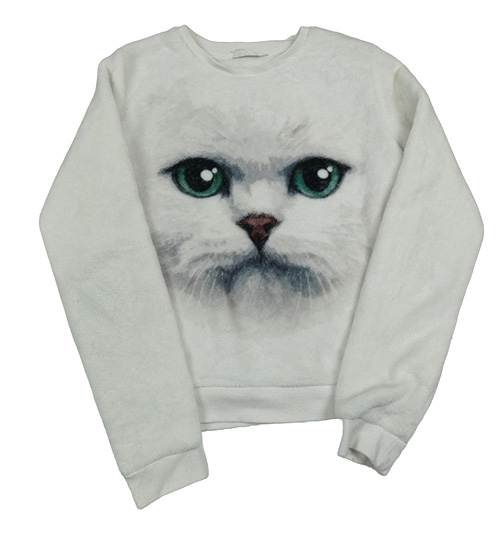 Biela chlpatá mikina s mačkou H&M