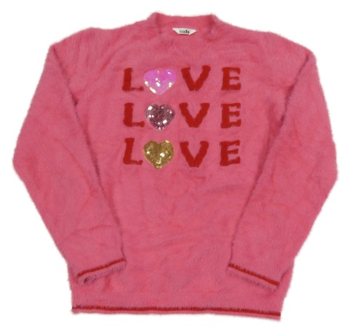 Ružový chlpatý sveter s nápismi a srdíčky z flitrů M&Co.