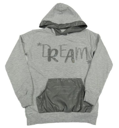 Svetlosivá ľahká mikina s nápisom a kapucňou
