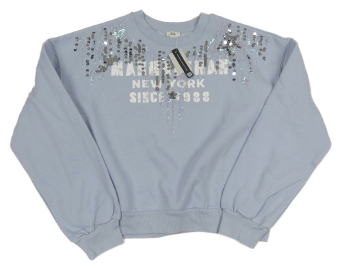Nové - Svetlomodrá crop mikina s flitrami a nápisom River Island