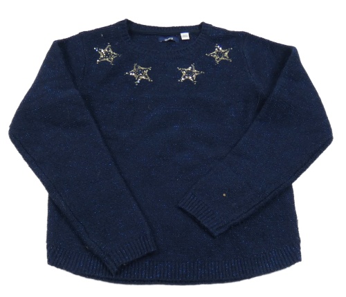 Tmavomodrý melírovaný sveter s hvězdičkami z flitrů a trblietkami OKaïdi