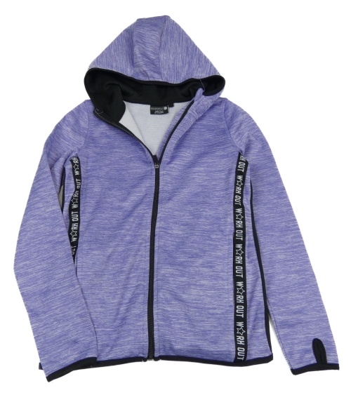 Fialovo-bielo-čierna melírovaná thermo prepínaci mikina s pruhmi s nápismi a kapucňou ERGEENOMIXX