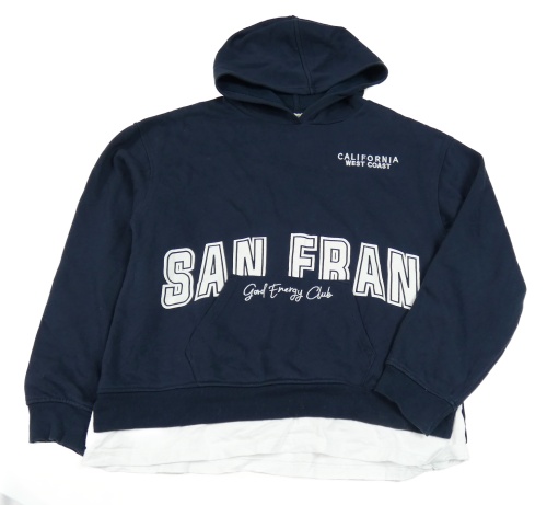 Tmavomodro-biela mikina s nápismi a všitým trikem a kapucňou River Island