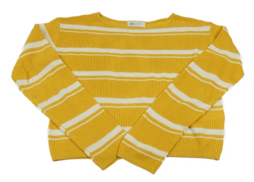 Hořčicovo-biely pruhovaný crop sveter H&M