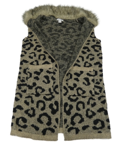 Béžovo-čierna úpletová vesta s leopardím vzorom a kožušinovým golierom Primark