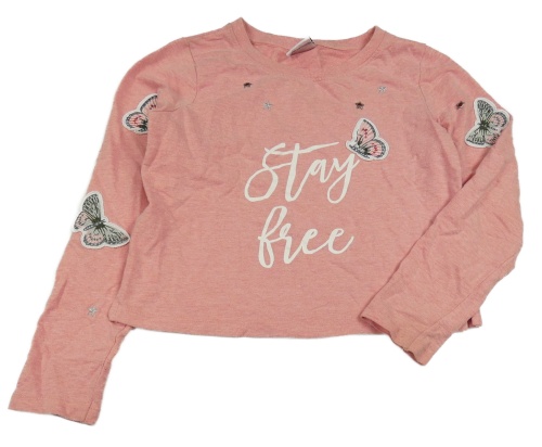 Svetloružová crop mikina s nápisom a motýlikmi Yigga