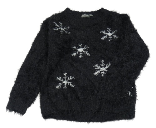 Čierny chlpatý sveter s vločkami Alive