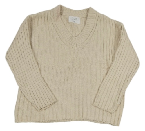 Smotanový pletený rebrovaný sveter Zara