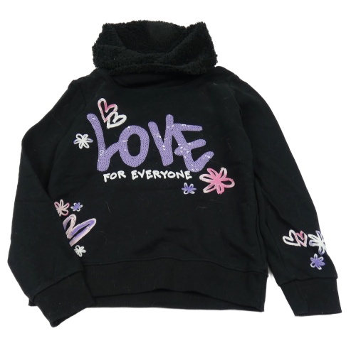 Čierna mikina s nápisy z flitrů a huňatým komínovým golierom Page one young