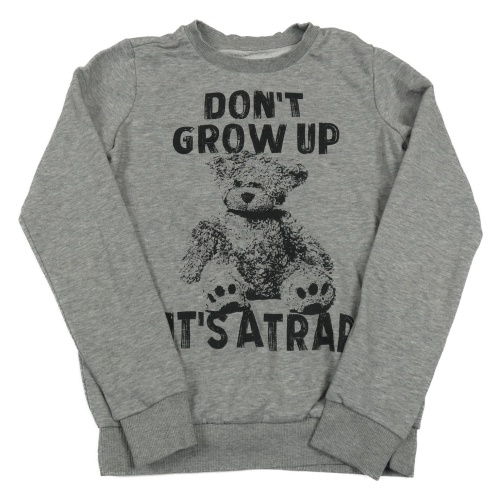 Sivá mikina s nápisom a medvedíkom