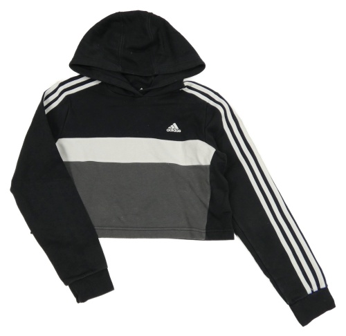 Čierno-bielo-tmavosivá crop mikina s kapucňou Adidas