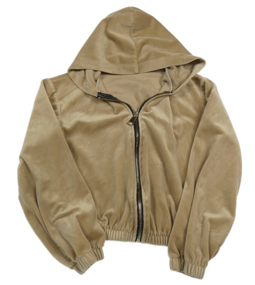 Svetlohnedá plyšová prepínaci crop mikina s kapucňou CLOOTHES