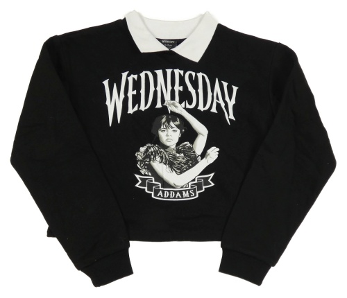 Čierna crop mikina s Wednesday a golierikom Primark