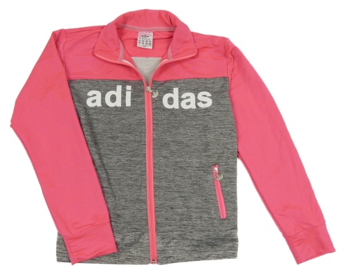 Sivo-neónově ružová melírovaná prepínaci športová mikina s nápisem Adidas