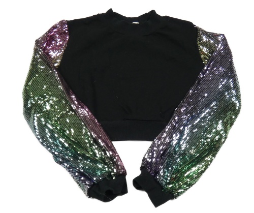 Čierna crop mikina s flitrovými rukávy Shein