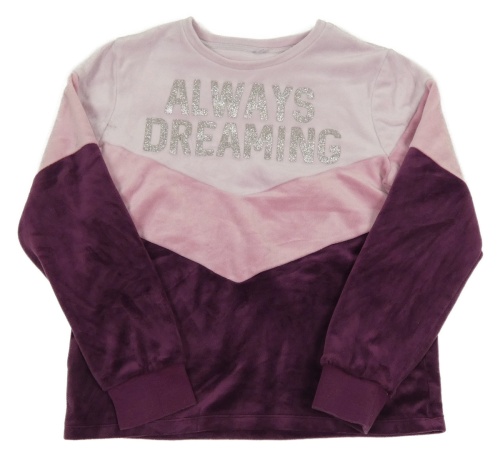 Ružovo-purpurová zamatová mikina s nápisom C&A