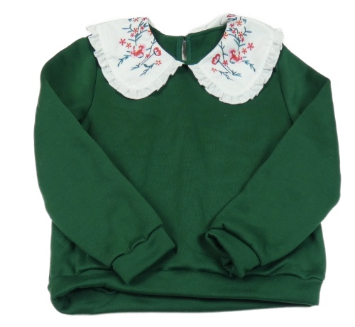 Tmavozelená mikina s vyšívaným golierikom Shein