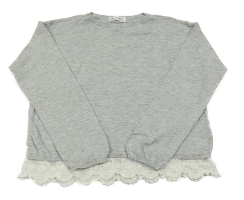 Sivý melírovaný ľahký crop sveter s čipkou H&M