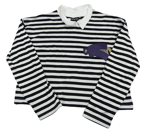 Bílo-černé pruhované crop mikinotriko s nášivkou a límečkem - Wednesday