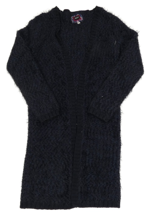 Tmavomodrý chlpatý svetrový dlhý cardigan Pocopiano