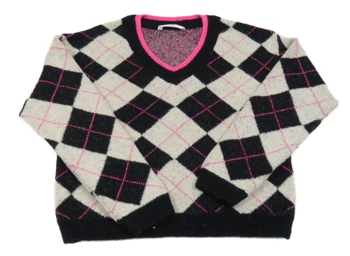 Čierno-svetlošedá -neónově ružový károvaný crop sveter M&S