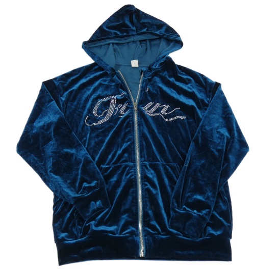 Tmavomodrá zamatová prepínaci mikina s kamienkami a kapucňou Shein