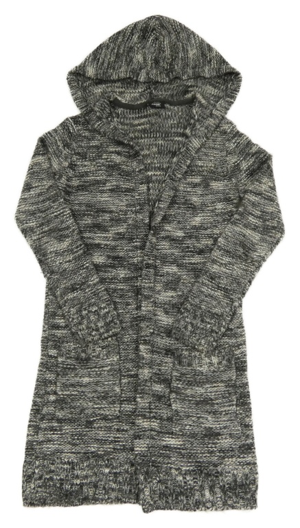 Sivo-biely melírovaný svetrový dlhý cardigán s kapucňou Page one young