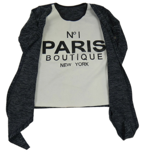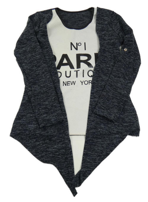 Čierno-sivý melírovaný cardigan s všitým topem a nápisom