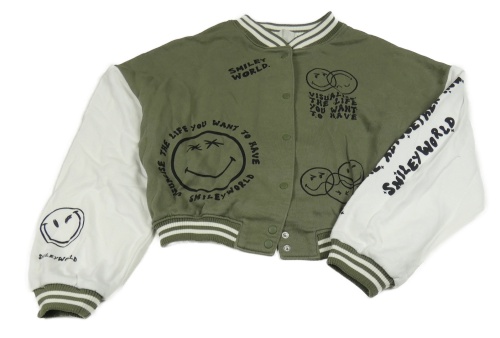 Kaki-biela crop baseballová mikina so smajlíkmi H&M