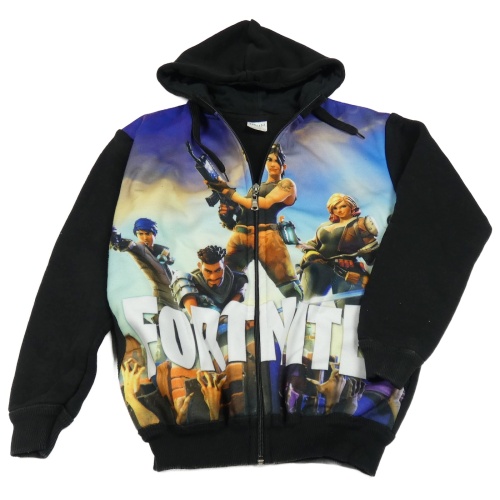 Čierno-tmavofialovo-modro-mátová prepínaci tepláková mikina s Fortnite a kapucňou