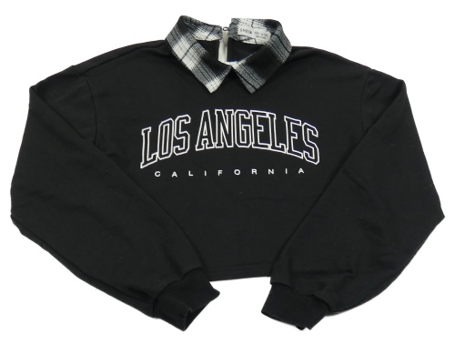 Čierna crop mikina s nápisom a košeľovým golierikom Shein