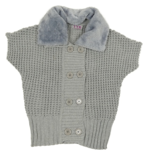 Sivý vlnený prepínaci sveter s kožešinou